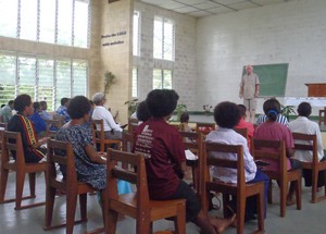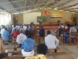 Heute ging die jährliche Kirchenkonferenz der ECOM zu Ende. Es kommen alle Leiter und Pastoren der örtlichen Gemeinden zusammen, dazu alle die, die irgendwelche Arbeitsbereiche in der ECOM leiten (Jugend, Sonntagsschule, Bildung, Gesundheit, Frauen...). Jeder gibt seinen Bericht und wichtige Entscheidungen werden besprochen und gefällt. Morgens gab's immer Bibelarbeiten. Ich wurde angefragt, sie zu halten und hatte auch zugesagt. Aber dieses Jahr nahm ich die Lehrerkollegen mit ins Boot. Wir trafen uns, um die Themen gemeinsam zu erarbeiten und teilten dann die Bibelarbeiten auf. David Kiele und Armstrong Pokawin hielten jeweils eine und ich übernahm den Rest. Mir war wichtig, dass ich nicht nur etwas "liefere" und alle klatschen, sondern dass wir gemeinsam etwas erarbeiten. Da bleibt - zumindest für die, die beteiligt sind - auf jeden Fall mehr hängen. Das war insgesamt eine gute Erfahrung. Die Konferenz war ansonsten wenig spektakulär; vieles in der Kirche steht unter dem Aspekt der Vorbereitung für das hundertährige Kirchenjubiläum 2014.