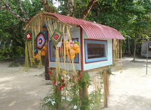 Vor drei Wochen fragte mich der Pastor von Lessau (Westküste), ob ich kommen könne, um ein Zehnt-Häuschen einzuweihen. Sie wollten den Leuten helfen, ihren "Zehnten" an die Gemeinde zu geben, so wie das im Alten Testament Sitte war und es viele heute noch praktizieren. Die wenigsten Leute haben ein festes Einkommen und so sollen sie ermutigt werden, den Zehnten von dem zu geben, was sie fischen, ernten oder sonst irgendwie bekommen. Keine schlechte Idee, so lange es nicht irgendwie zum Gesetz wird und jeder ein "schlechter Christ" ist, der es anders handhabt. Ich hab da immer ein bisschen Bauchweh; Leute hier lieben's manchmal zu schwarz-weiß. Aber wie gesagt, ich find's ein hilfreiches Mittel und weil ich auch noch predigen durfte und sie sogar den Sprit zahlten, hab ich zugesagt. Etwas schmunzeln musste ich dann ob der Größe des Häuschens schon :-) Irgendwie hatte ich im Kopf, dass es früher in Deutschland Zehntscheunen gab - da ist die Kiste, die jetzt in Lessau steht, doch etwas davon entfernt. Aber gut, hoffen wir, dass sie ihren Zweck erfüllt und Menschen verstehen lernen, dass alles, was wir haben, letztlich aus Gottes Hand kommt und es nur angemessen ist aus Dankbarkeit auch wieder etwas abzugeben.