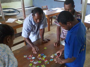 Jochen und Nadine Stern mit ihrer kleinen Tochter Neline waren mit dabei und die Leiter der City Mission in Lay, Larry und Bonnie George. Vor einiger Zeit haben wir gemeinsam beschlossen, dass Sterns den Rest ihren ersten Terms in PNG bei der City Mission in Lae mitarbeiten. Sie sind gerade dabei, ihre Sachen zu packen; am Di. in einer Woche fliegen sie dann wieder nach Lae. So haben wir die Zeit zwischen ihrem Packen und meinen Vorbereitungen für die Kirchenkonferenz genutzt, um uns einen Nachmittag Verschaufpause zu gönnen. Schön war's!